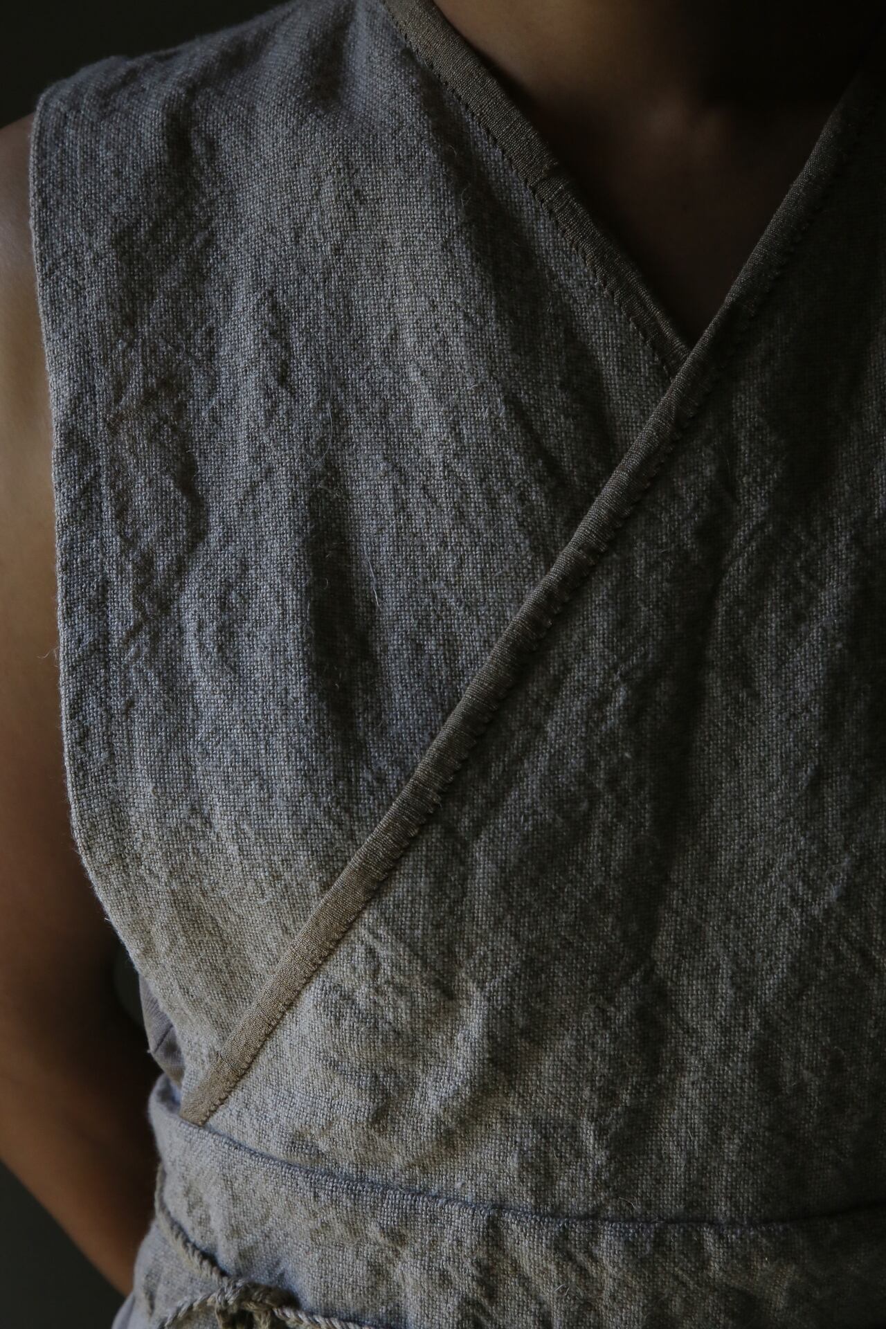 薄手のワンピースの上からや下にパンツを仕込んでも様になる衣です。