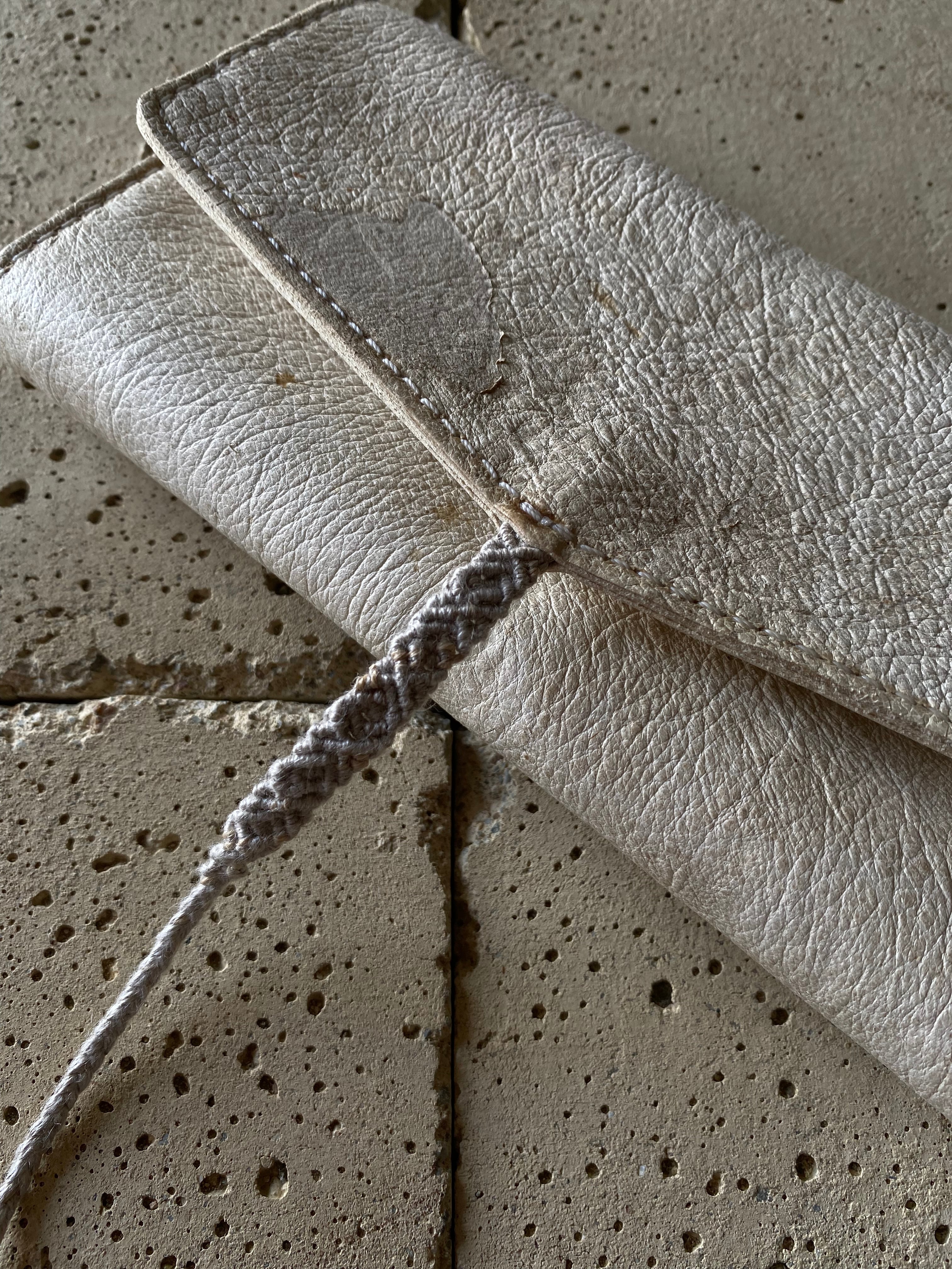 野原の野生鹿革作品は、高知県四万十で暮らす彼らの友人が、一人で動物の皮を鞣す作業を行い、その革を使って作られています。