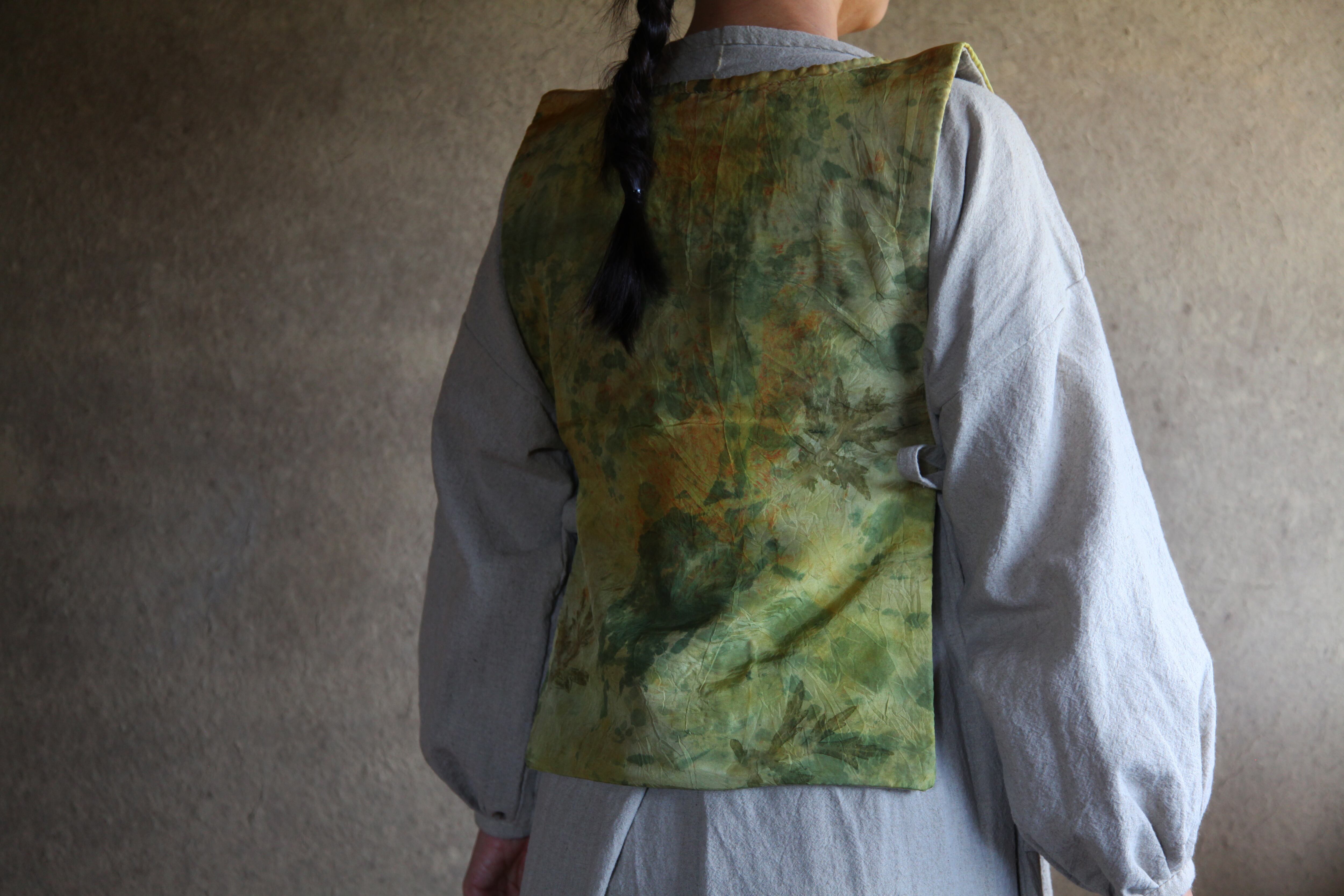 植物の色を描くように染色された絹布を使った色鮮やかで美しい一点です
